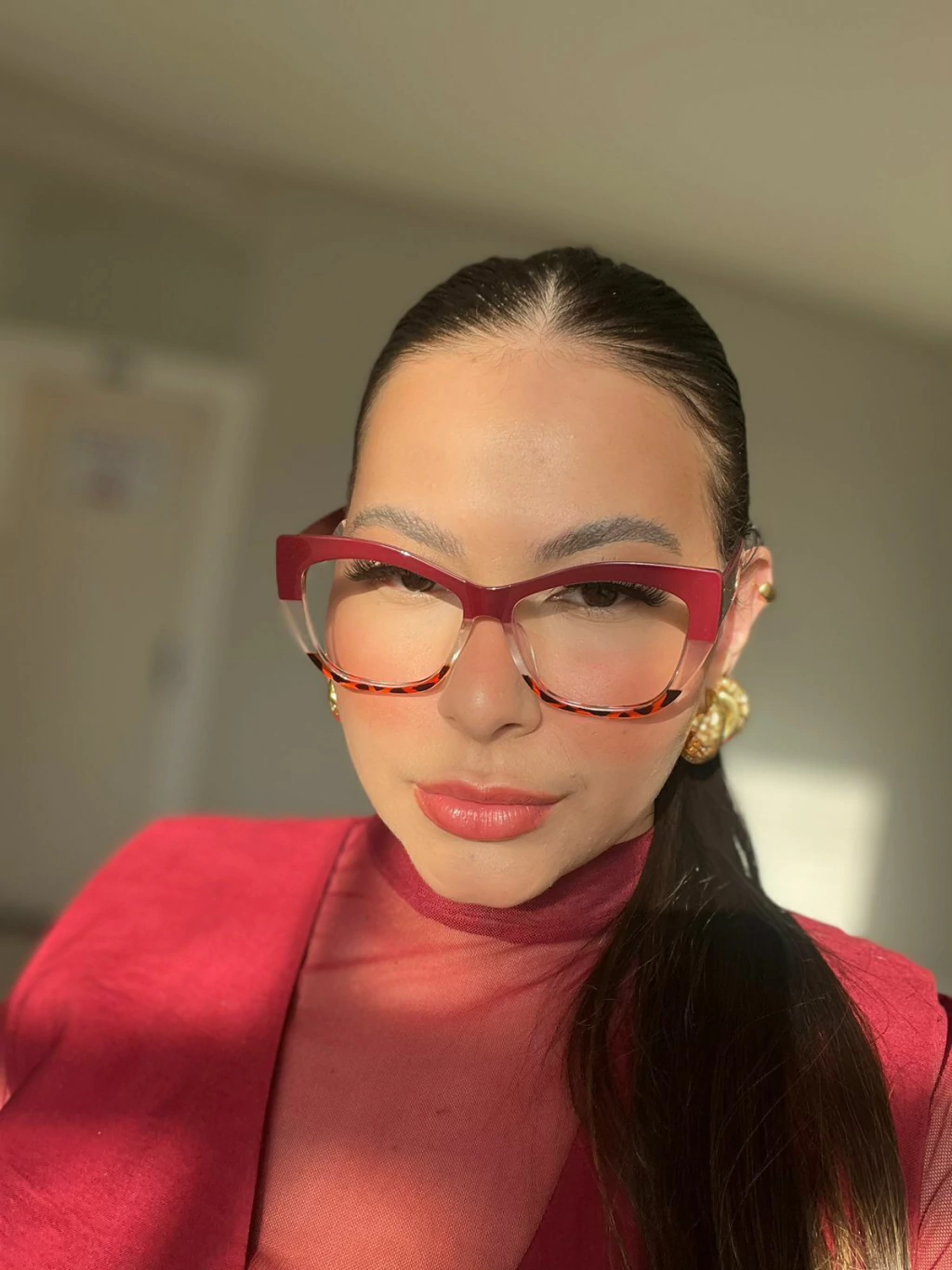 feito no acetato mix de cores animal print, tranparente, vinho.
